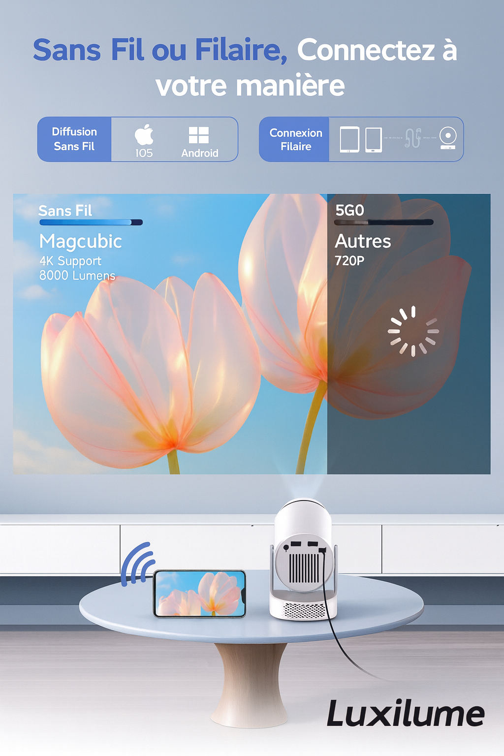 Toutes les réponses aux questions les plus fréquentes sur nos mini projecteurs Luxilume.