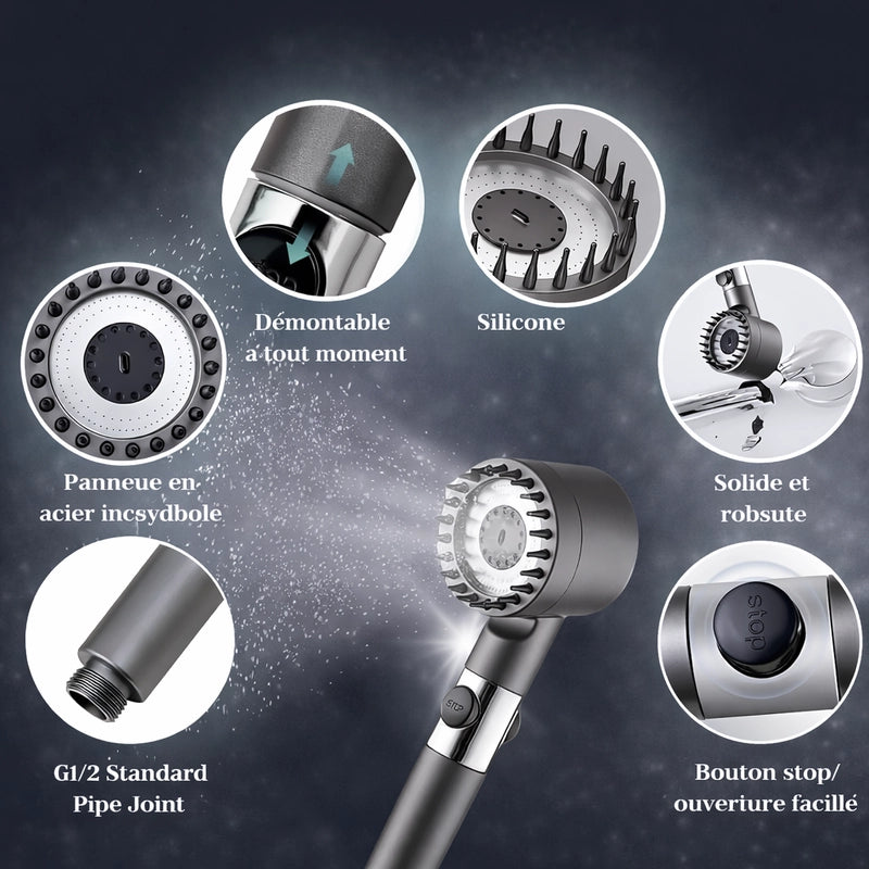 Conçu pour une intégration fluide dans votre rituel, l'installation est d'une simplicité déconcertante. Aucune compétence particulière n'est requise. En quelques instants, transformez votre douche en une oasis de pureté et de bien-être.