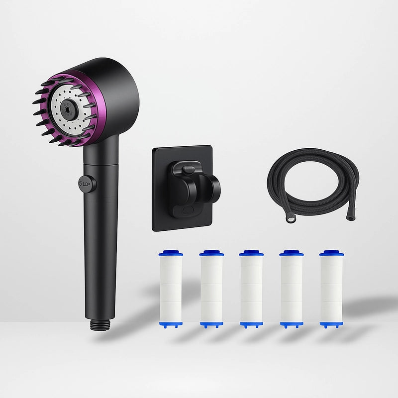 Infusé d'une filtration à 5 étapes, chaque goutte d'eau est purifiée, offrant une douceur enveloppante pour votre peau et un éclat revitalisant à vos cheveux.